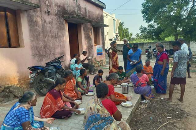 Women leaders prepared a simple and traditional meal consisting of rice, green dal, and coconut.